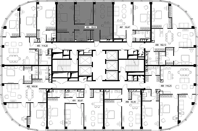 Продаётся 2-к квартира общей площадью 83.70 кв. м с предчистовой отделкой на 56-м этаже премиального небоскреба Famous.