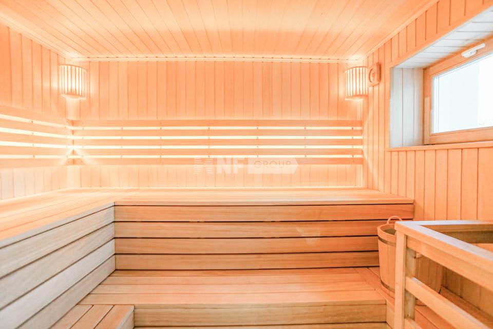 1 этаж: холл, с/у, спальня с с/у, кухня с кладовой, столовая с выходом на веранду и зону барбекю, каминный зал, спортзал, СПА-зона: с/у, 2 душевые, бассейн 7,5 м/2,5 м чаша, сауна с выходом на просторную террасу с джакузи;