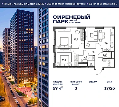 Купить 3к квартиру 77 м² в ЖК Мичуринский парк