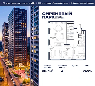 Купить 3к квартиру 86 м² в квартале Upside Towers