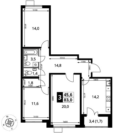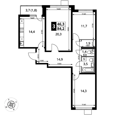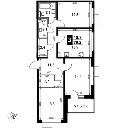 Купить 3к квартиру 79 м² в ЖК Мытищи Парк