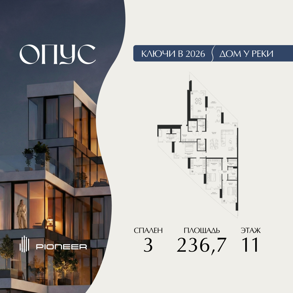 Прямая продажа от застройщика! Продаётся 3-к квартира общей площадью 236.7 кв. м. на 11-м этаже 11 этажного дома. Клубный дом ОПУС - современный шедевр архитектуры от компании PIONEER, трансформирующий пространство, меняющий привычный ход вещей. Близость Москвы-реки определила его исключительную форму, вдохновлённую стихией воды. Уникальный и единственный в своём роде ОПУС создаёт ощущение преображения, деликатно взаимодействуя с городской тканью. Продуманная территория с парковой атмосферой позволяет находиться в уединении в самом центре города, именно эти исключительные характеристики делают ОПУС особенным. Площадь однокомнатной квартиры здесь превышает 50 квадратных метров, а отдельные трёхкомнатные решения восхищают 266-метровым простором и видами на реку. Уникальные квартиры с 8 балконами на разные стороны света, не менее эффектные решения - кабинеты и гардеробные с отдельными балконами, а ванные комнаты с панорамными окнами и собственным балконом. ОПУС располагается в историческом месте с видом на Крутицкое подворье и Симоновский вал. Совсем рядом легендарное Замоскворечье - район, сохранивший камерную атмосферу старой Москвы. Локация уникальна также тем, что новые современные объекты будут соседствовать здесь с культовыми объектами культурного и исторического наследия города. За 22 года на рынке недвижимости компания PIONEER реализовала более 30 проектов. Сегодня PIONEER - девелопер премиальной недвижимости с 4 проектами класса премиум и deluxe. Продажа от застройщика. Покупка доступна в рассрочку и ипотеку. Звоните, и мы с удовольствием расскажем все подробности о проекте и условиях покупки.