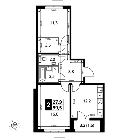 Купить 3к квартиру 77 м² в квартале Белый Grad