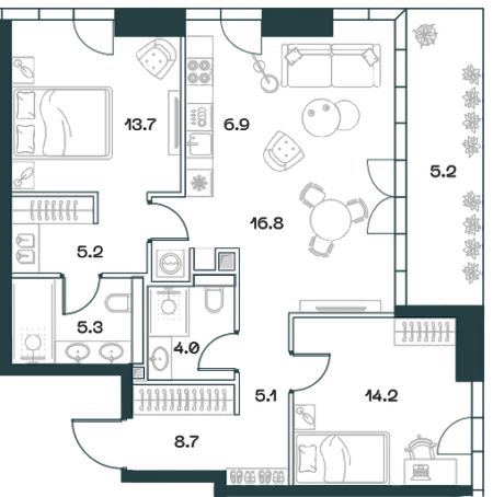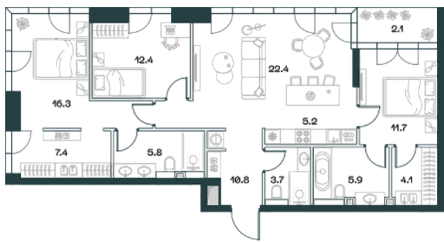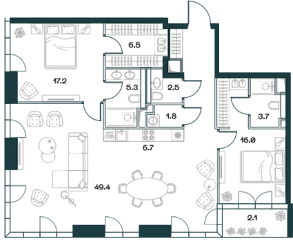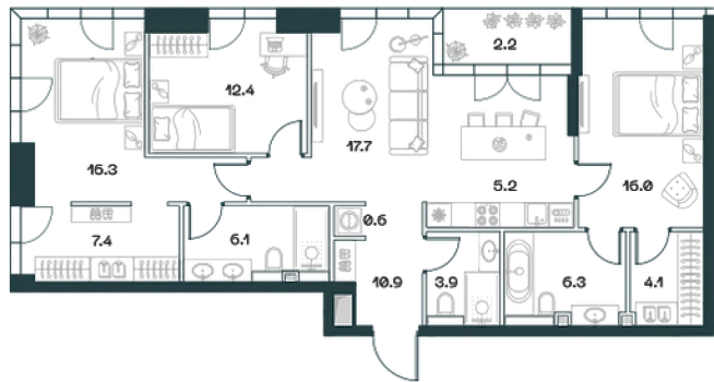Купить 3к квартиру 129 м² в клубном доме Sydney Prime
