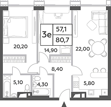 Купить 3к квартиру 78 м² в ЖК Sezar City