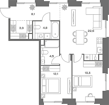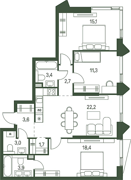 Скидка 22% при 100% оплате / ипотеке. Скидка 2% на покупку вторых и последующих жилых помещений. Скидка 1% за подписку на Telegram ФСК. Скидки и бонусы владельцам карты лояльности. Ипотека от 0,11% с ПВ от 20,1% на первый год от Альфа-Банка.