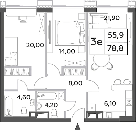 Общая площадь квартиры – 79.6 м2 и высота потолков 3.1 м.Устанавливаются премиальные окна Schuco с панорамным остеклением с функцией проветривания, конвекторы в полу. Светлая квартира с большой кухней-гостиной 29 м2 с двумя санузлами. Окна на запад с потрясающими видами на закат на Долину реки Сетунь.. На каждом этаже есть технические балконы для установки системы кондиционирования.