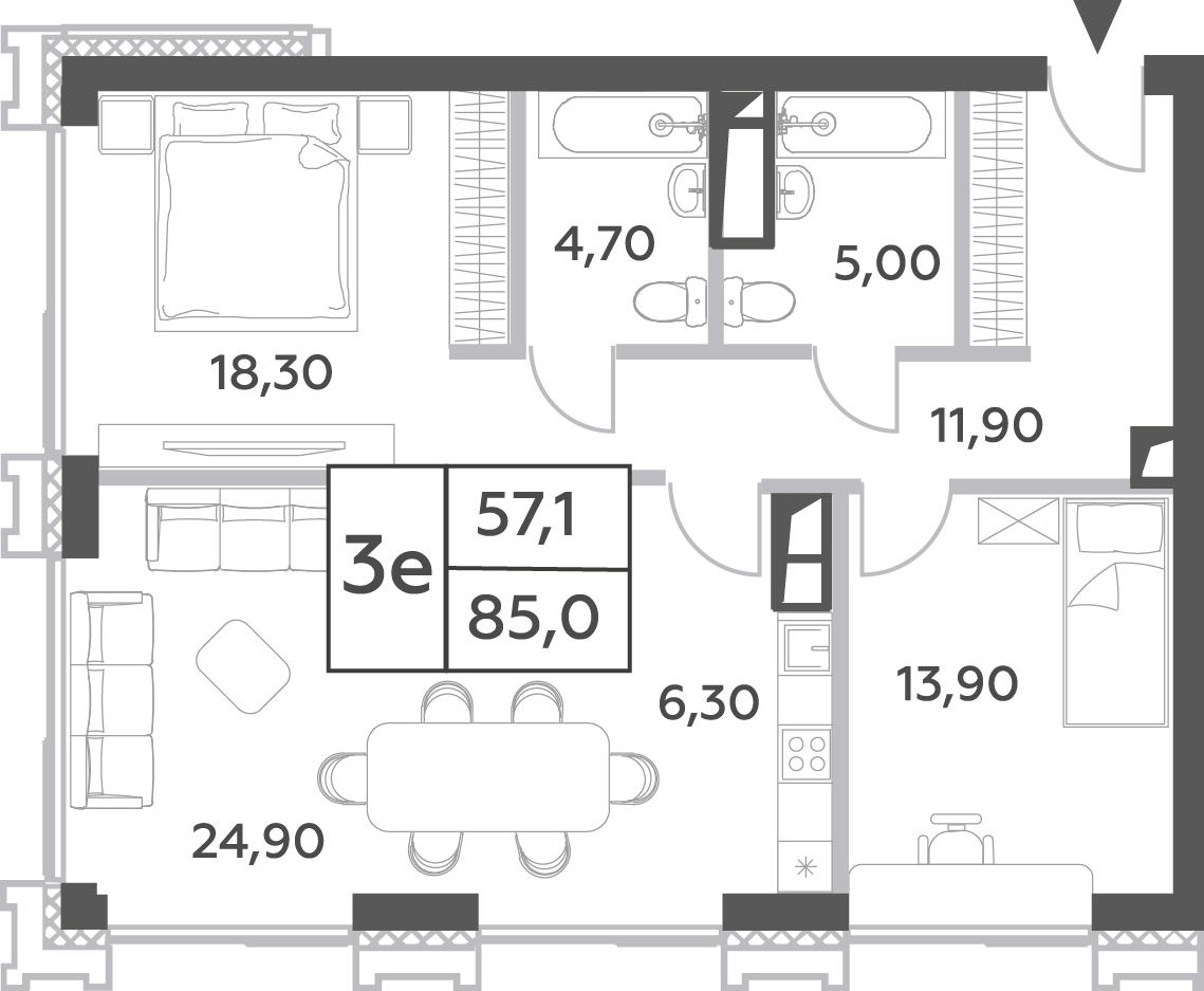 • Высокие потолки: в квартирах – 3.1 м, в пентхаусах – 3,7 м