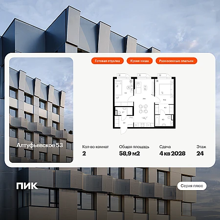 Продается 2-к квартира площадью 67.5 кв.м. на 20-м этаже 25 этажного дома в ЖК "Гоголь парк" от ГК ОСНОВА.