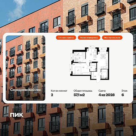 Купить 2к квартиру 61 м² в ЖК Южная Битца