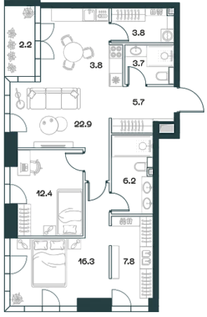 Купить 3к квартиру 84 м² в Премиум-квартал SHIFT