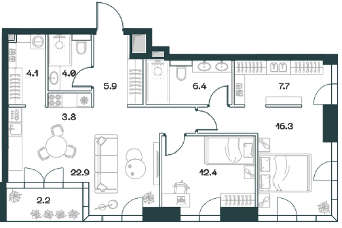 Купить 3к квартиру 85 м² в Премиум-квартал SHIFT