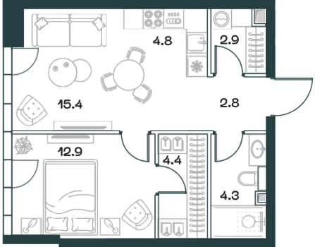 • Если вы покупаете для себя - вам останется просто занести вещи: в апартаменте есть красивая, хорошая и удобная мебель и техника.