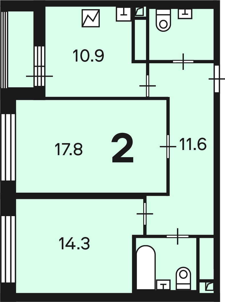 Количество санузлов: 2 санузла