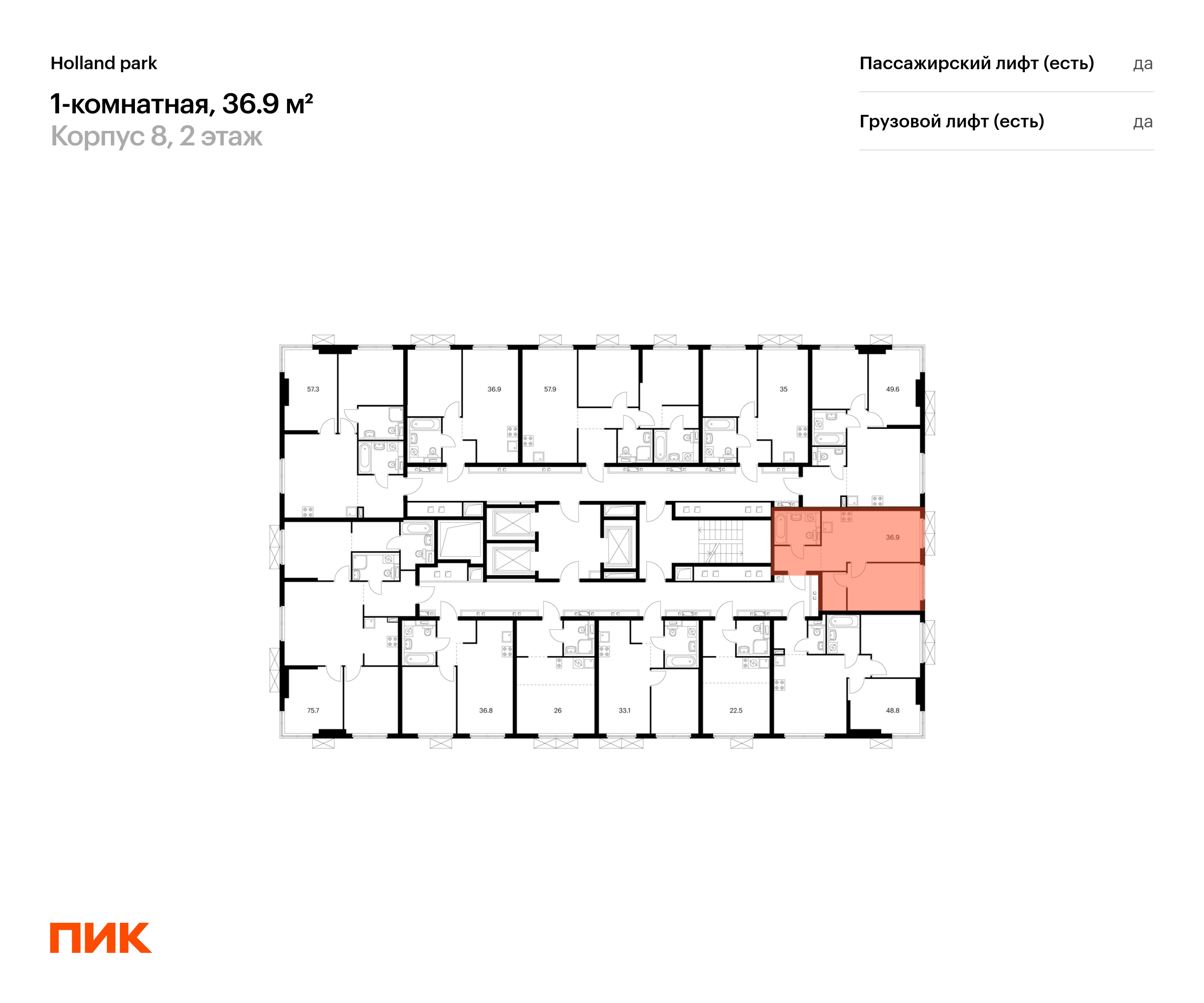Продаётся 1-комн.квартира площадью 36.90 кв.м на 2 этаже 24 этажного дома (Корпус 8, секция 2) проекта ПИК Holland park. Светлый просторный подъезд на уровне земли, функциональная планировка, большие окна.