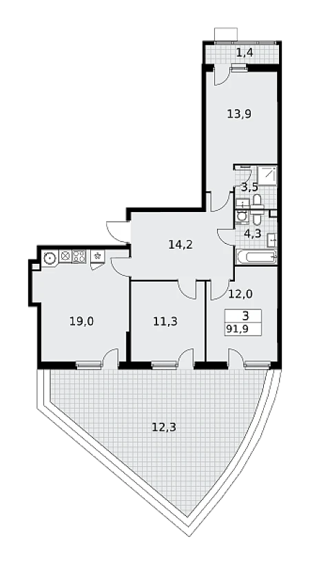Купить 2к квартиру 92 м² в квартале Мыс