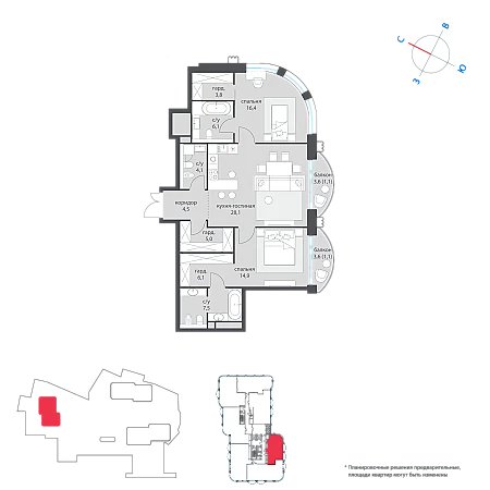 Купить 2к квартиру 86 м² в клубном комплексе Luzhniki Collection