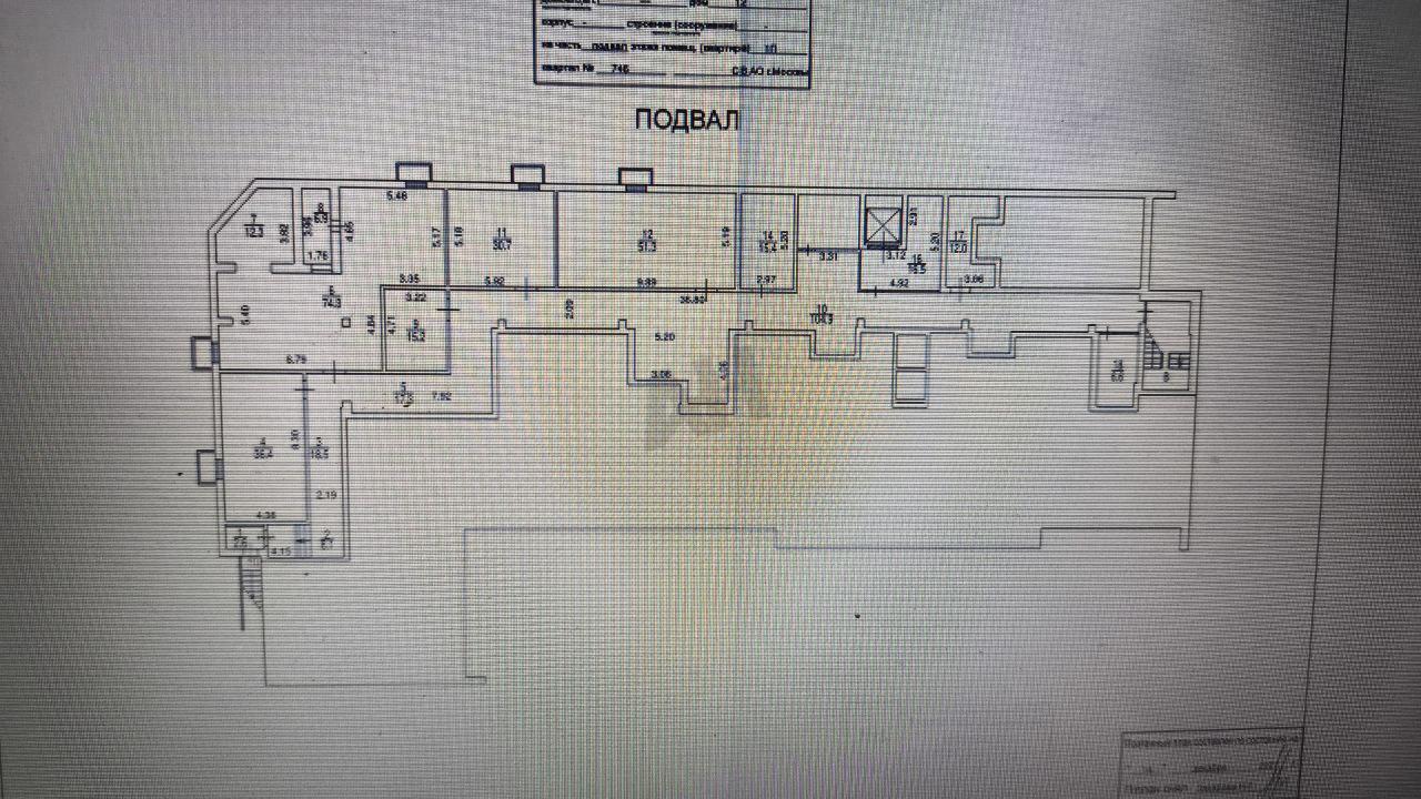 подвал с окнами 431,6 кв.м. Можно использовать как склад или офисную часть, высота потолка подвала 2,7-2,8 м.