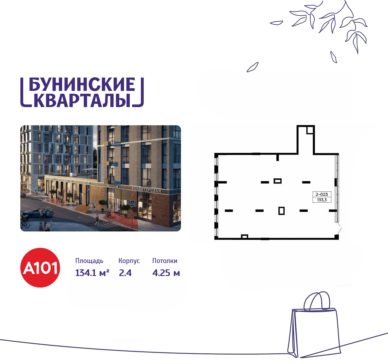 Снять торговое помещение 134 м² в ЖК Бунинские кварталы