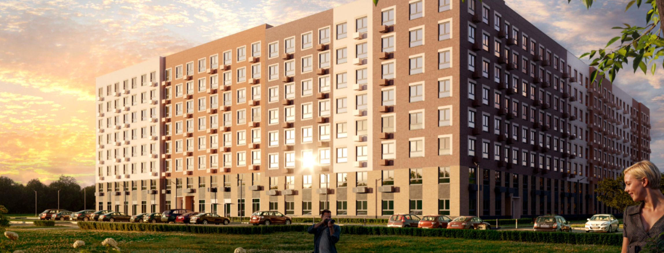 Во дворе дома детская и спортивная площадка, парковка для автомобилей.