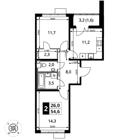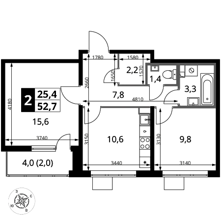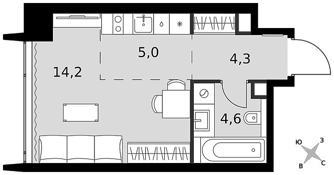 Купить 1к квартиру 42 м² в квартале Cityzen