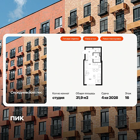 Купить 1к квартиру 34 м² в ЖК Ильинские луга