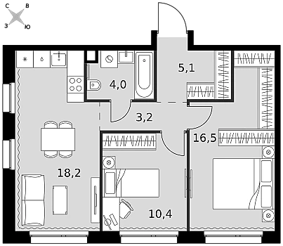 Купить 1к квартиру 44 м² в ЖК Высотка на Жукова