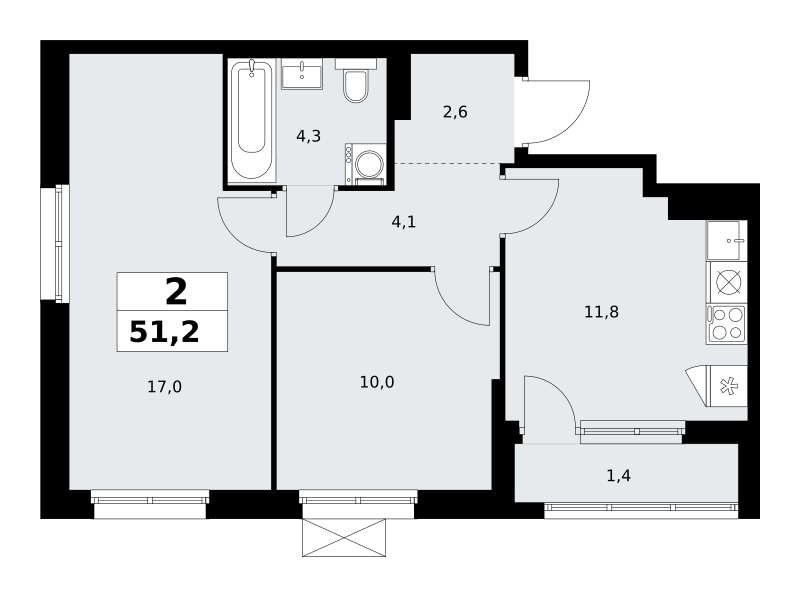 Продаётся 1-комнатная квартира от застройщика: общая площадь 38.30 м, жилая 14.60 м, кухня 15.70 м, 21-й этаж, жилой квартал «Событие-6», корпус 2 (секция 5) Срок сдачи: 4 квартал 2029 года.