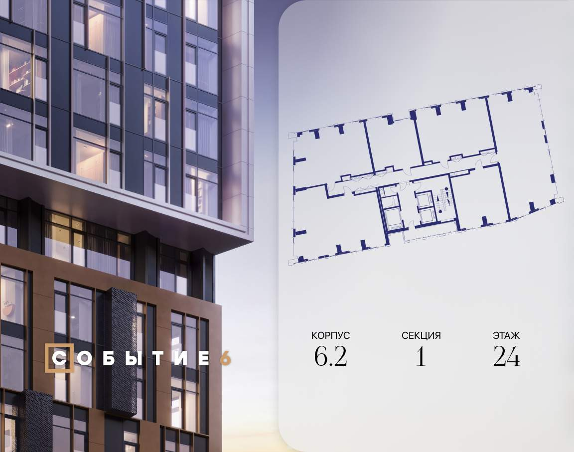 Продаётся 2-комнатная квартира от застройщика: общая площадь 72.60 м, жилая 31.80 м, кухня 24.10 м, 24-й этаж, жилой квартал «Событие-6», корпус 2 (секция 1) Срок сдачи: 4 квартал 2029 года.