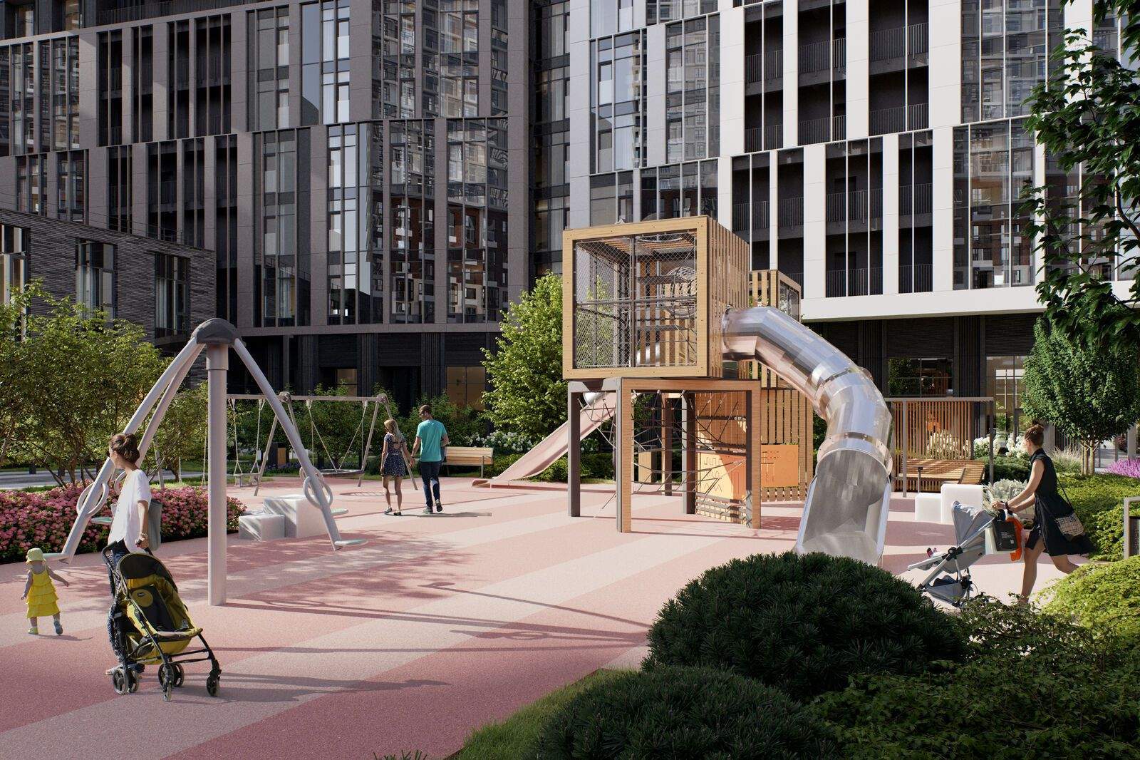 Внутренний двор - настоящее продолжение вашего дома: закрытая охраняемая территория без машин, развивающие детские площадки, воркауты-зоны для тех, кто хочет быть в форме, площади для праздников и посиделок с соседями.
