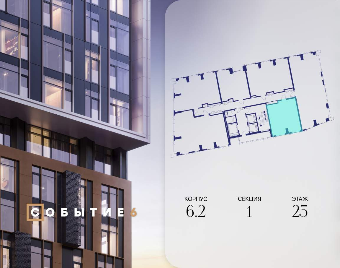 Продаётся 1-комнатная квартира от застройщика: общая площадь 51.80 м, жилая 17.10 м, кухня 25.70 м, 25-й этаж, жилой квартал «Событие-6», корпус 2 (секция 1) Срок сдачи: 4 квартал 2029 года.