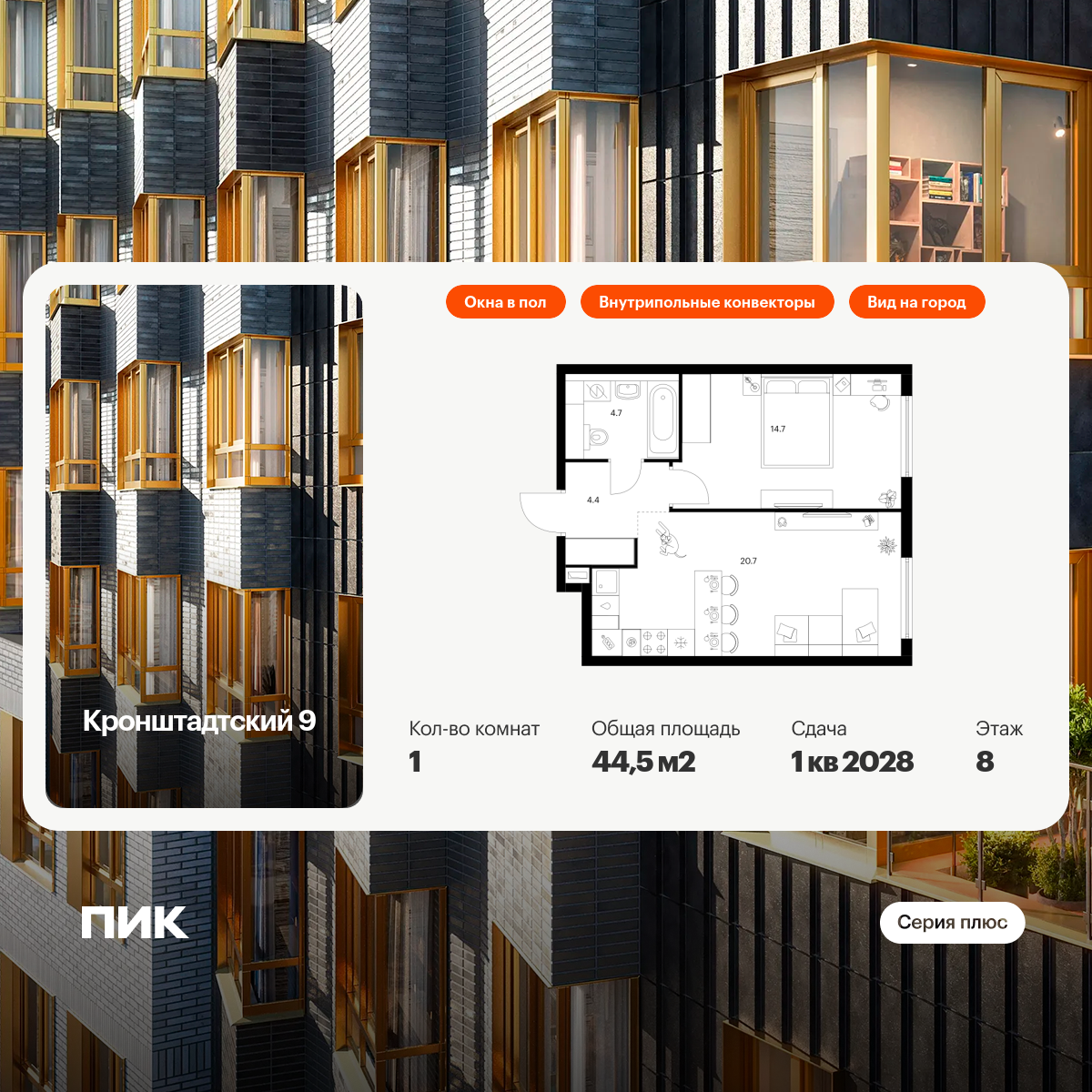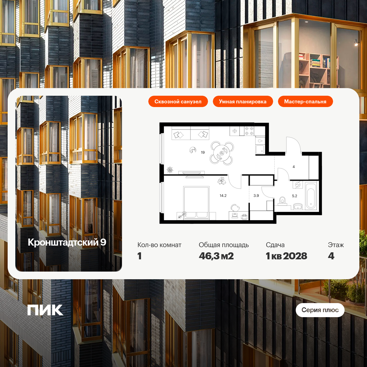 Продается 1-комнатная квартира от застройщика: общая площадь 41.70 м, жилая 14.60 м, кухня 16.40 м, 6-й этаж, жилой квартал «Гордость», корпус 36 (секция 4) . Срок сдачи: 2 квартал 2029 года.