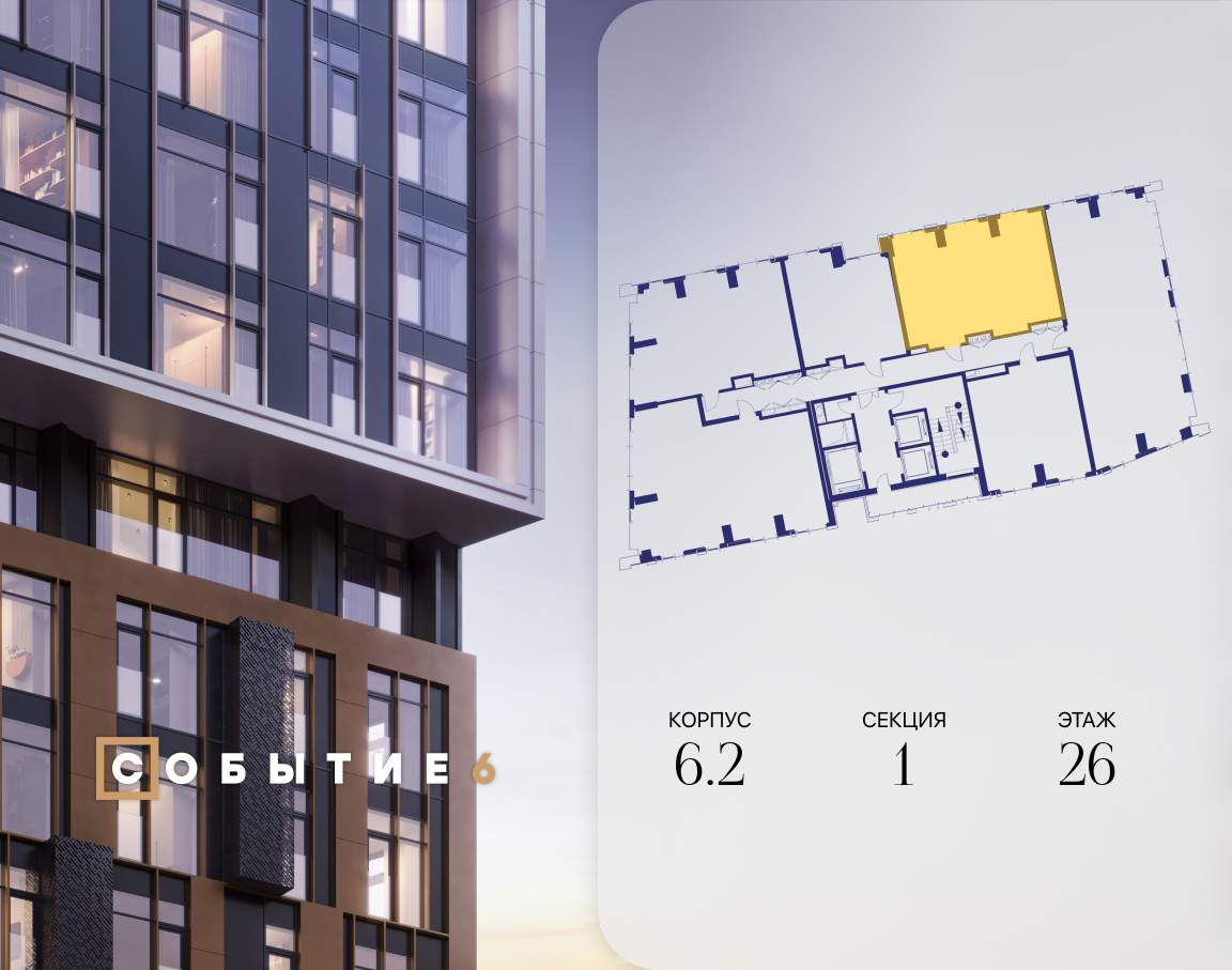 Продаётся 2-комнатная квартира от застройщика: общая площадь 72.60 м, жилая 31.80 м, кухня 24.10 м, 26-й этаж, жилой квартал «Событие-6», корпус 2 (секция 1) Срок сдачи: 4 квартал 2029 года.