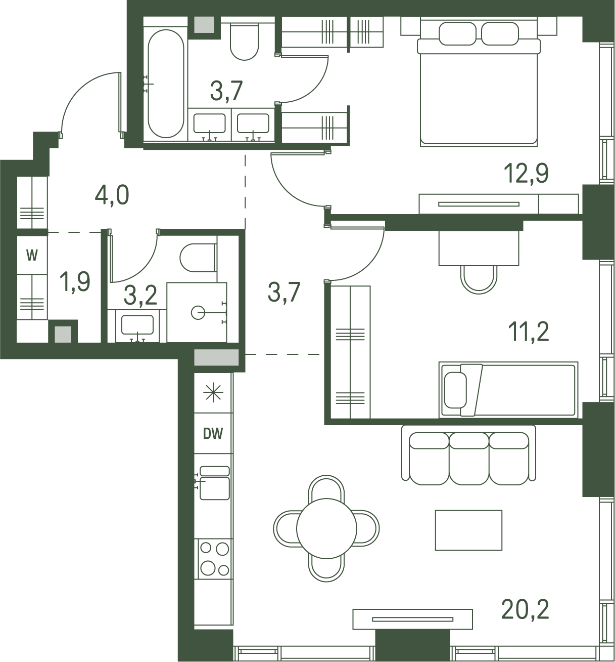Продаётся 2-комнатная квартира от застройщика: общая площадь 64.10 м, жилая 27.60 м, кухня 21.50 м, 10-й этаж, жилой квартал «Событие-6», корпус 2 (секция 4) Срок сдачи: 4 квартал 2029 года.