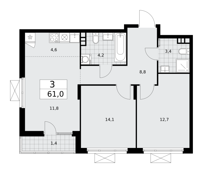 Продается 1-комнатная квартира от застройщика: общая площадь 45.40 м, жилая 17.10 м, кухня 19.30 м, 14-й этаж, жилой квартал «Гордость», корпус 36 (секция 4) . Срок сдачи: 2 квартал 2029 года.