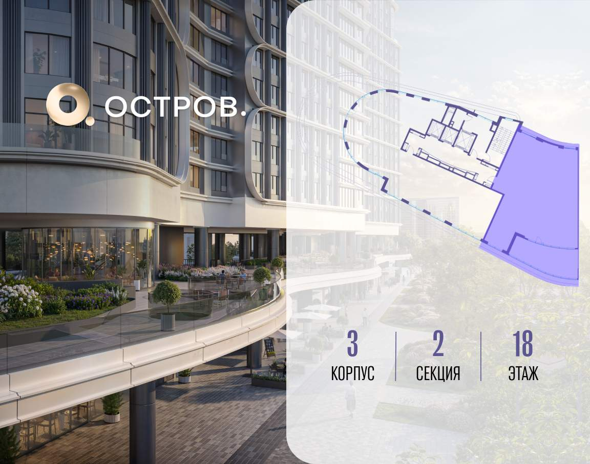 ОСТРОВ от Донстрой - жилой комплекс на западе Москвы, в Мневниковской пойме. Уникальное преимущество комплекса - в том, что он обособлен от города рекой и природным парком (650 га) . Благодаря природному окружению эта территория имеет лучший экологический рейтинг в столице. Кварталы ОСТРОВА объединены ландшафтным дизайном в единое пространство - с набережными и Центральным бульваром. На ОСТРОВЕ любые объекты, необходимые для полноценной жизни и отдыха, находятся на расстоянии 15-минутной прогулки. Торговый центр и супермаркеты, кафе и рестораны, фитнес, салоны красоты, школы и детские сады. А также крупнейший в Москве спортивный кластер.