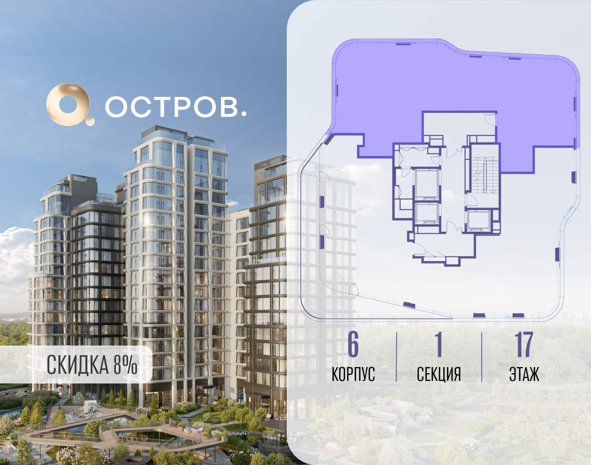 ОСТРОВ от Донстрой - жилой комплекс на западе Москвы, в Мневниковской пойме. Уникальное преимущество комплекса - в том, что он обособлен от города рекой и природным парком (650 га) . Благодаря природному окружению эта территория имеет лучший экологический рейтинг в столице. Кварталы ОСТРОВА объединены ландшафтным дизайном в единое пространство - с набережными и Центральным бульваром. На ОСТРОВЕ любые объекты, необходимые для полноценной жизни и отдыха, находятся на расстоянии 15-минутной прогулки. Торговый центр и супермаркеты, кафе и рестораны, фитнес, салоны красоты, школы и детские сады. А также крупнейший в Москве спортивный кластер.