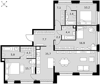 Продаётся 3-комн. квартира от застройщика: общая площадь 94.40 м, жилая 36.70 м, кухня 44.10 м, 19-й этаж, жилой квартал «Остров 7», корпус 7 (секция 2) . Срок сдачи: 3 квартал 2028 года.
