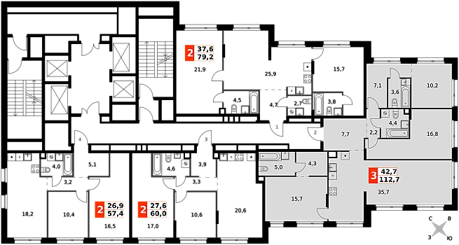 2 санузла (1 раздельный и 1 совмещенный) . В жилой зоне 2 больших окна на одну сторону, хорошая инсоляция.
