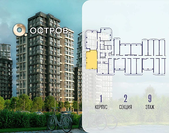 Продаётся 2-комн. квартира от застройщика: общая площадь 63.10 м, жилая 27.50 м, кухня 22.40 м, 9-й этаж, жилой квартал «Остров 14», корпус 1 (секция 2) . Срок сдачи: 2 квартал 2029 года.
