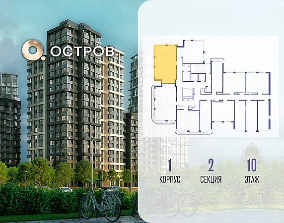Продаётся 2-комн. квартира от застройщика: общая площадь 63.10 м, жилая 27.50 м, кухня 22.40 м, 10-й этаж, жилой квартал «Остров 14», корпус 1 (секция 2) . Срок сдачи: 2 квартал 2029 года.