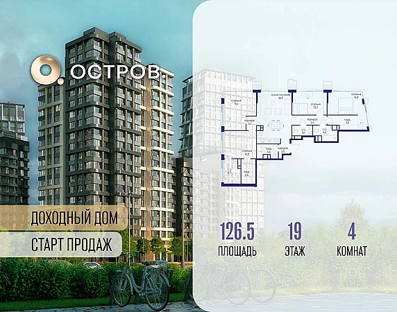 Продаётся 4-комн. квартира от застройщика: общая площадь 126.50 м, жилая 60.30 м, кухня 26.50 м, 19-й этаж, жилой квартал «Остров 14», корпус 6 (секция 1) . Срок сдачи: 2 квартал 2029 года.
