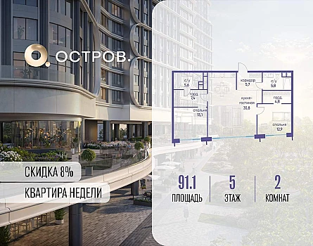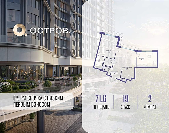 ОСТРОВ от Донстрой - жилой комплекс на западе Москвы, в Мневниковской пойме. Уникальное преимущество комплекса - в том, что он обособлен от города рекой и природным парком (650 га) . Благодаря природному окружению эта территория имеет лучший экологический рейтинг в столице. Кварталы ОСТРОВА объединены ландшафтным дизайном в единое пространство - с набережными и Центральным бульваром. На ОСТРОВЕ любые объекты, необходимые для полноценной жизни и отдыха, находятся на расстоянии 15-минутной прогулки. Торговый центр и супермаркеты, кафе и рестораны, фитнес, салоны красоты, школы и детские сады. А также крупнейший в Москве спортивный кластер.