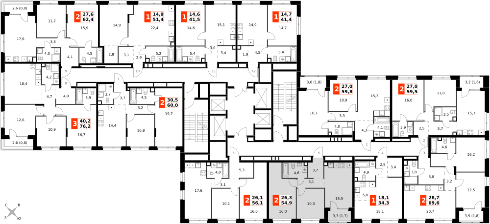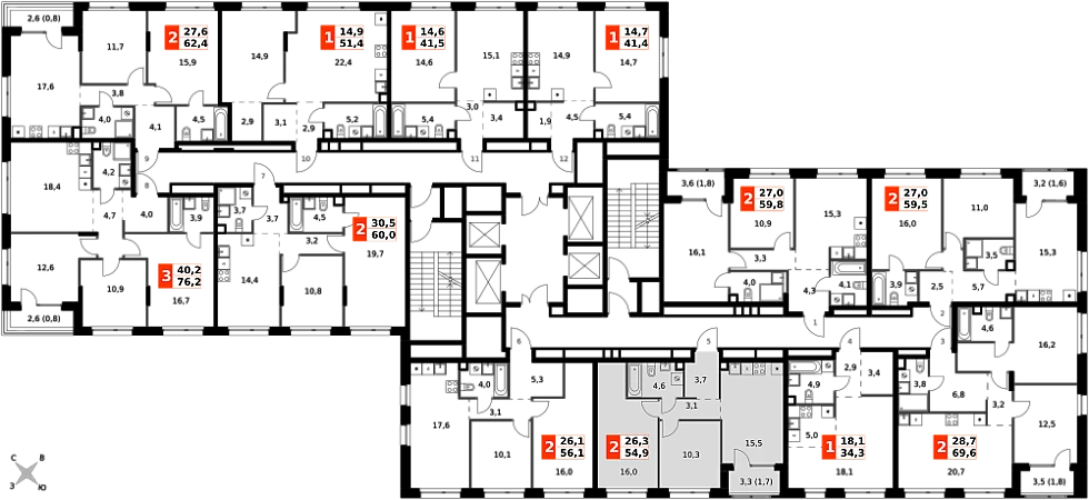 Продаётся 3-к квартира номер 185 общей площадью 54.9 кв.м. на 17-м этаже 27 этажного здания. Отделка Whitebox.
