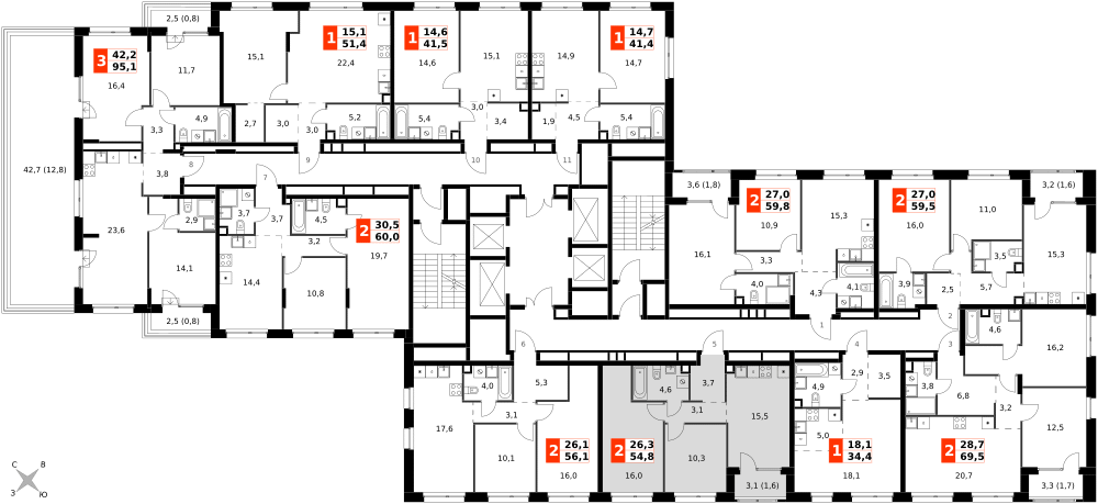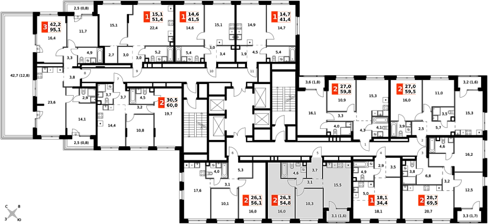 Продаётся 3-к квартира номер 209 общей площадью 54.8 кв.м. на 19-м этаже 27 этажного здания. Без отделки.