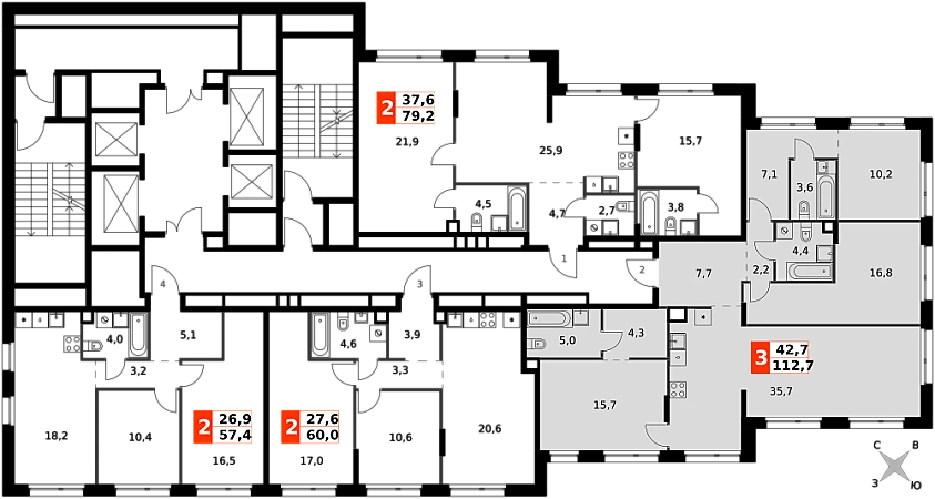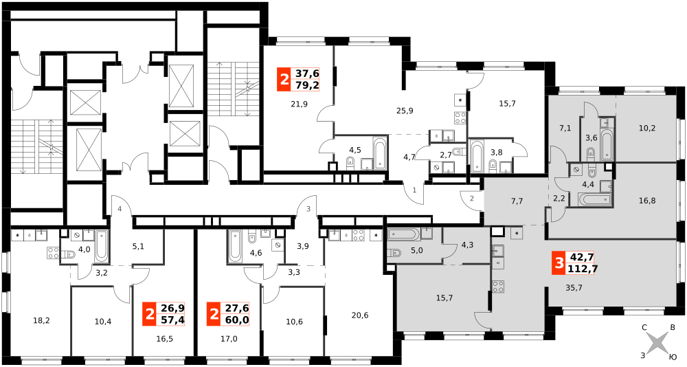 Продаётся 4-к квартира номер 246 общей площадью 112.7 кв.м. на 24-м этаже 27 этажного здания. Без отделки.