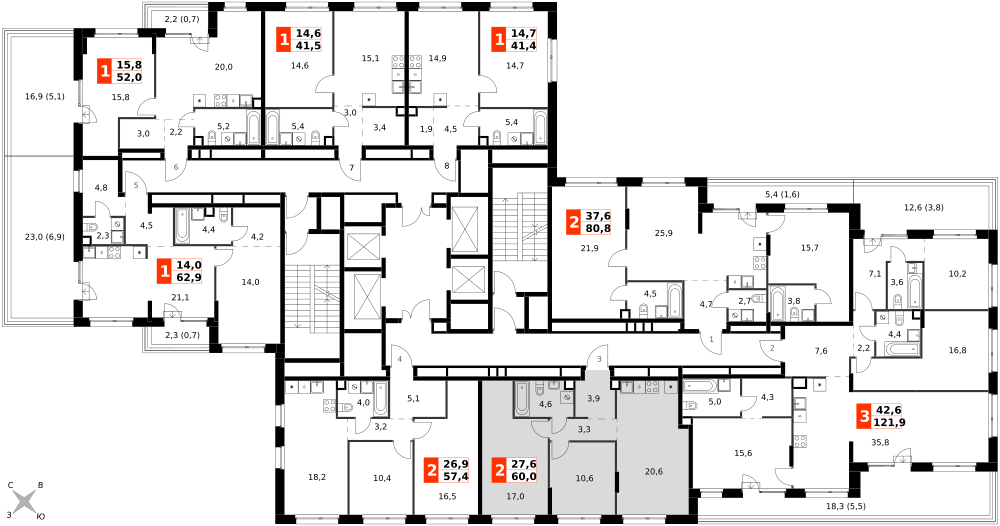 Продаётся 3-к квартира номер 228 общей площадью 60 кв.м. на 21-м этаже 27 этажного здания. Без отделки.