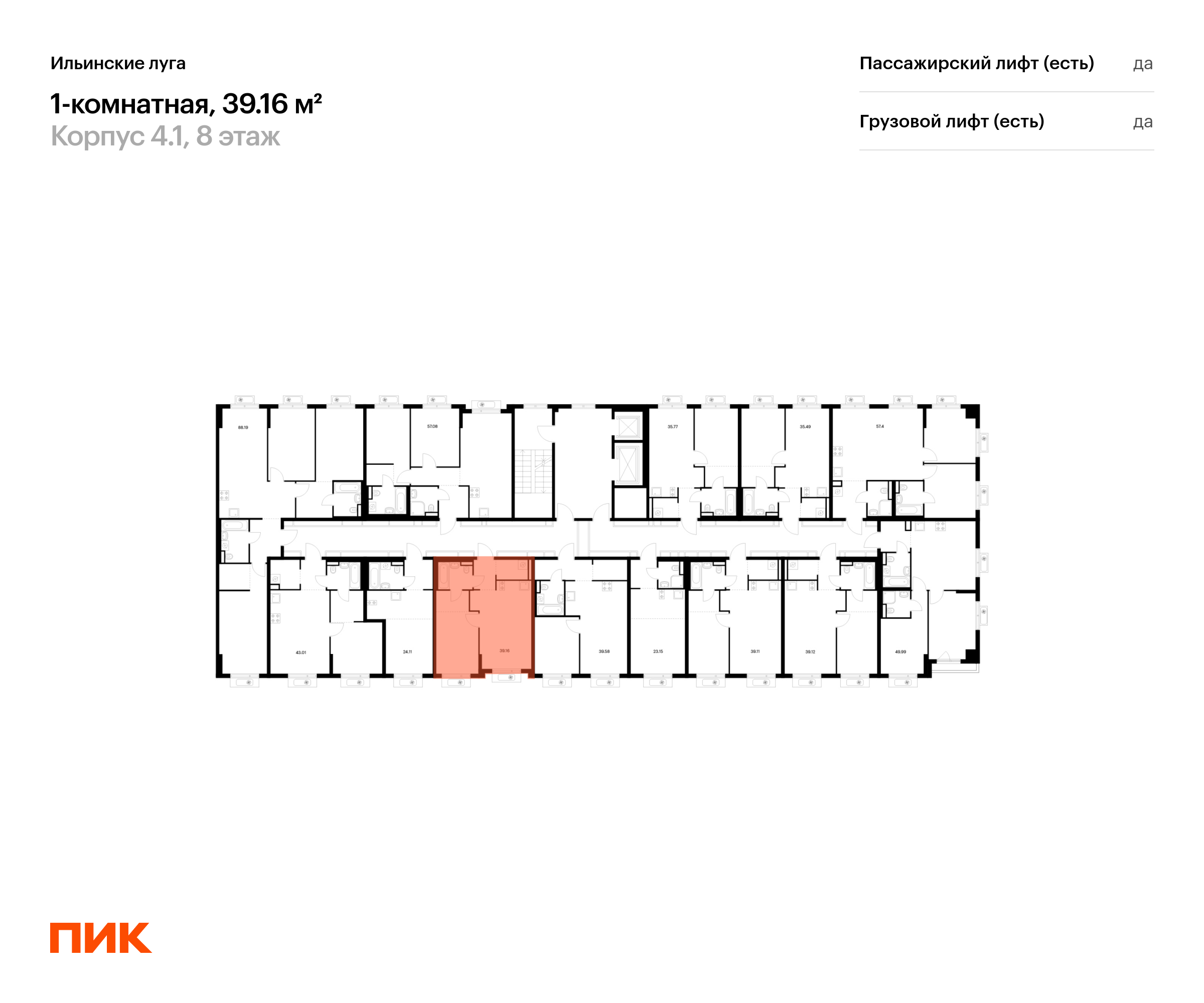 Продаётся 1-комн.квартира площадью 39.16 кв.м на 8 этаже 9 этажного дома (Корпус 4.1, секция 1) проекта ПИК Ильинские луга. Светлый просторный подъезд на уровне земли, функциональная планировка, большие окна, с отделкой.
