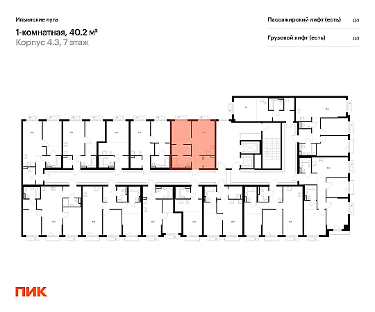 Продаётся 1-комн.квартира площадью 40.20 кв.м на 7 этаже 9 этажного дома (Корпус 4.3, секция 4) проекта ПИК Ильинские луга. Светлый просторный подъезд на уровне земли, функциональная планировка, большие окна, с отделкой.