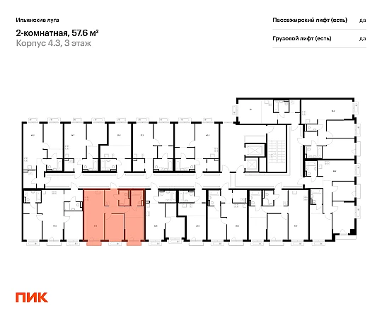 Продаётся 2-комн.квартира площадью 57.60 кв.м на 5 этаже 9 этажного дома (Корпус 4.3, секция 4) проекта ПИК Ильинские луга. Светлый просторный подъезд на уровне земли, функциональная планировка, большие окна, с отделкой.